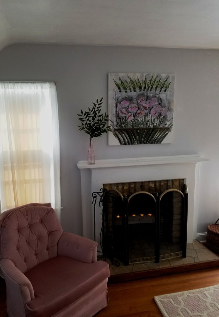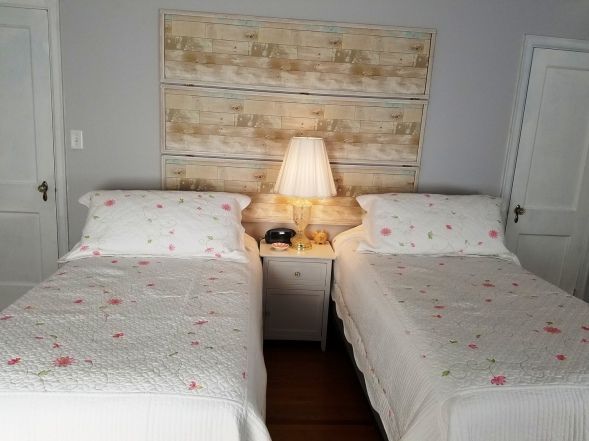 Cozy up by your own crackling wood fireplace in this lovely cottage room which offers either a King size bed or 2 twin size beds (must have 3 day notice and $30 service fee for set up) for those who wish to sleep separate. Perfect for all visiting guests! This room has a claw-footed tub with a hand held shower and a private toilet and sink. A television and alarm clock is also available along with cable and WIFI service.